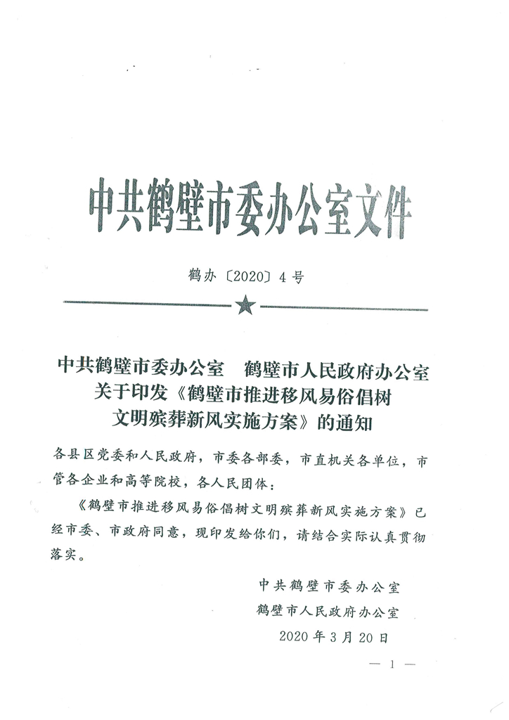 中共鶴壁市委辦公室鶴壁市政府辦公室關(guān)于印發(fā)ㄍ鶴壁市推進(jìn)移風(fēng)易俗倡樹文明殯葬新風(fēng)實(shí)施方》的通知