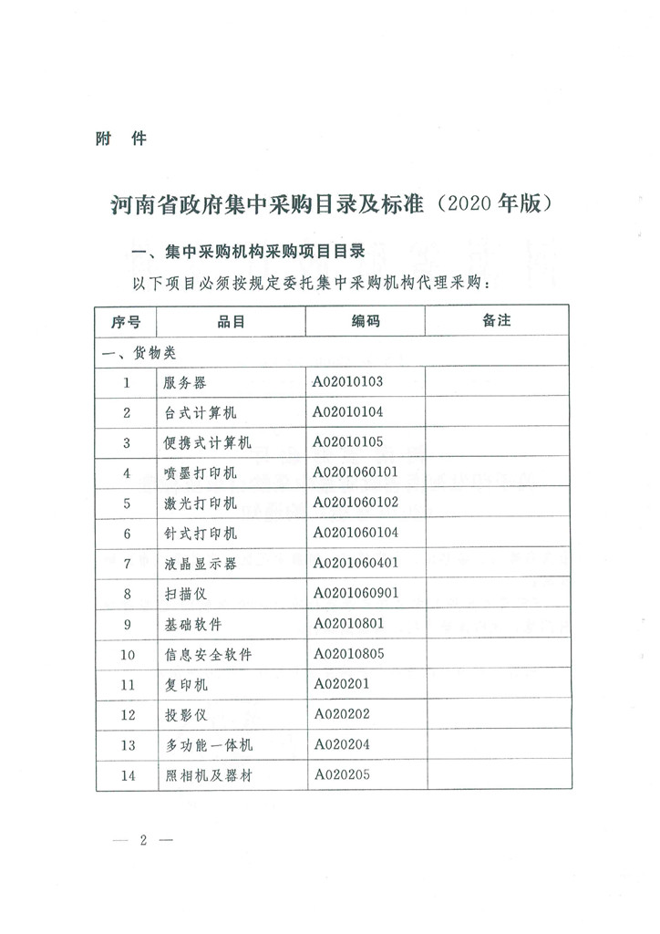 河南省財(cái)政廳關(guān)于印發(fā)河南省政府集中采購(gòu)目錄及標(biāo)準(zhǔn)(2020年版)的通知