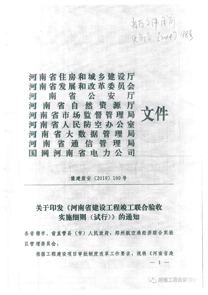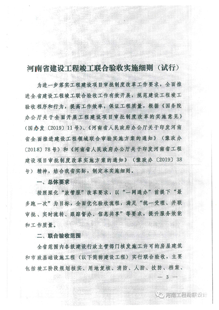 關于印發(fā)《河南省建設工程竣工聯(lián)合驗收實施細則(試行)》的通知